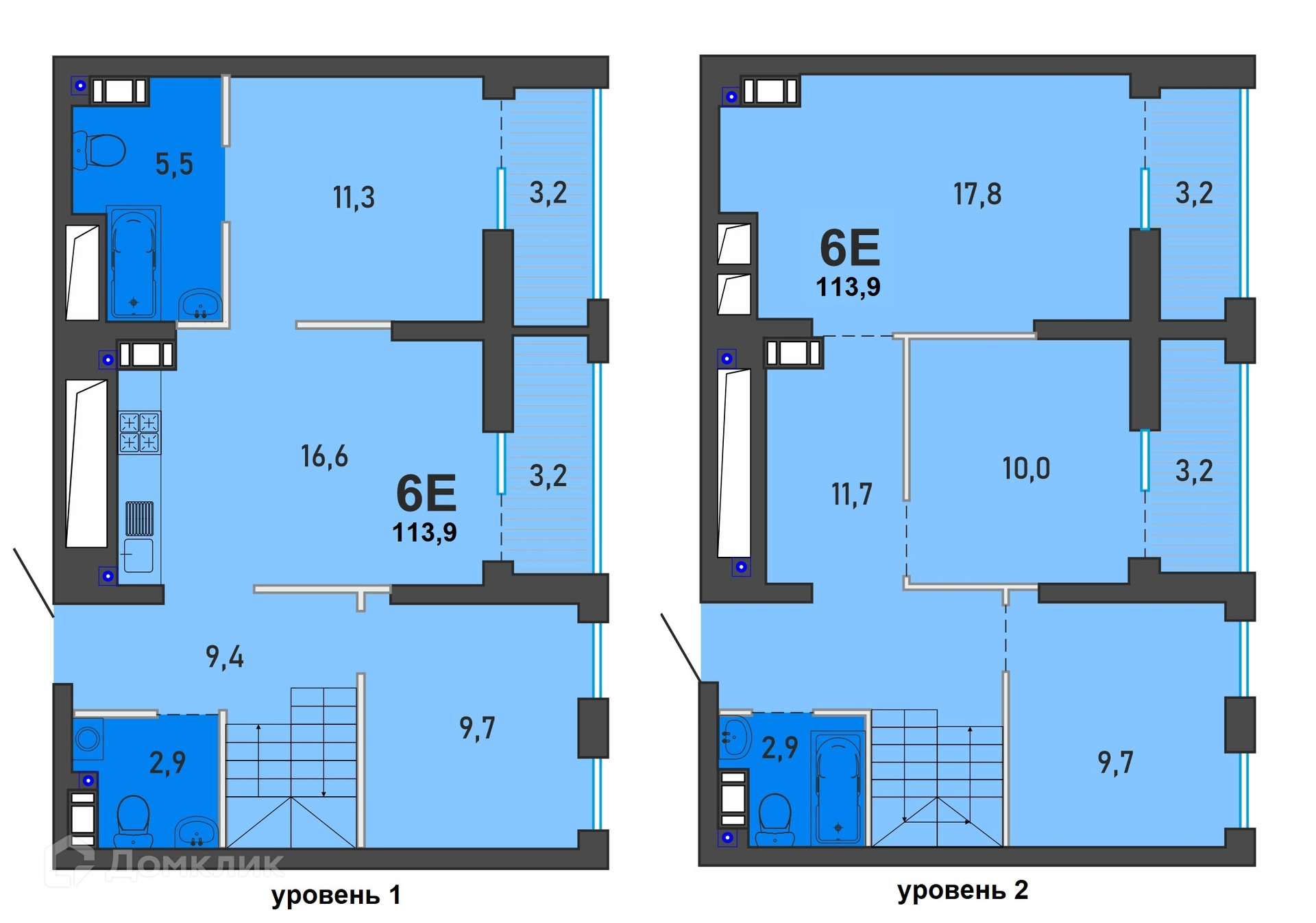 - Общая площадь: 113.9 м²