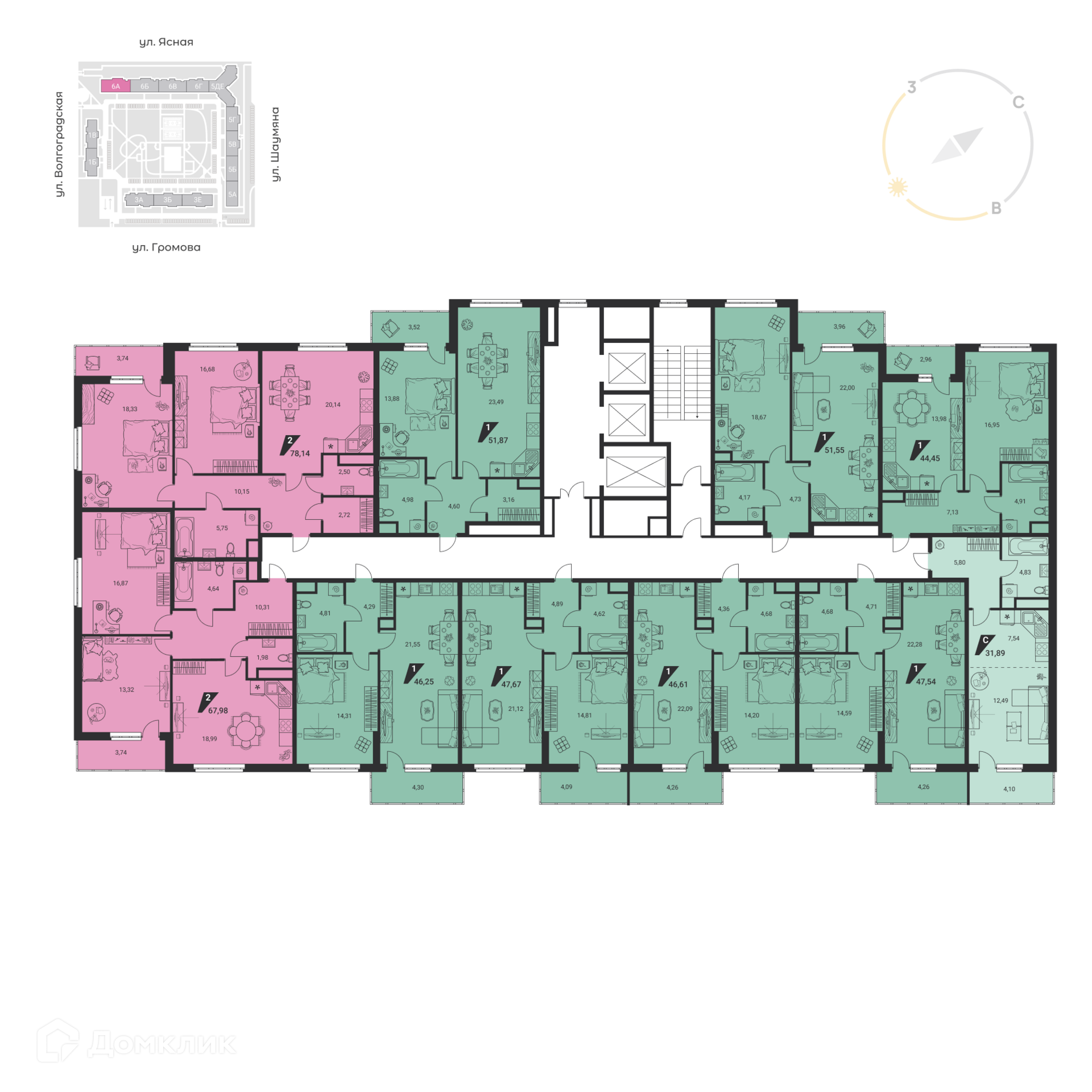 Площади квартир