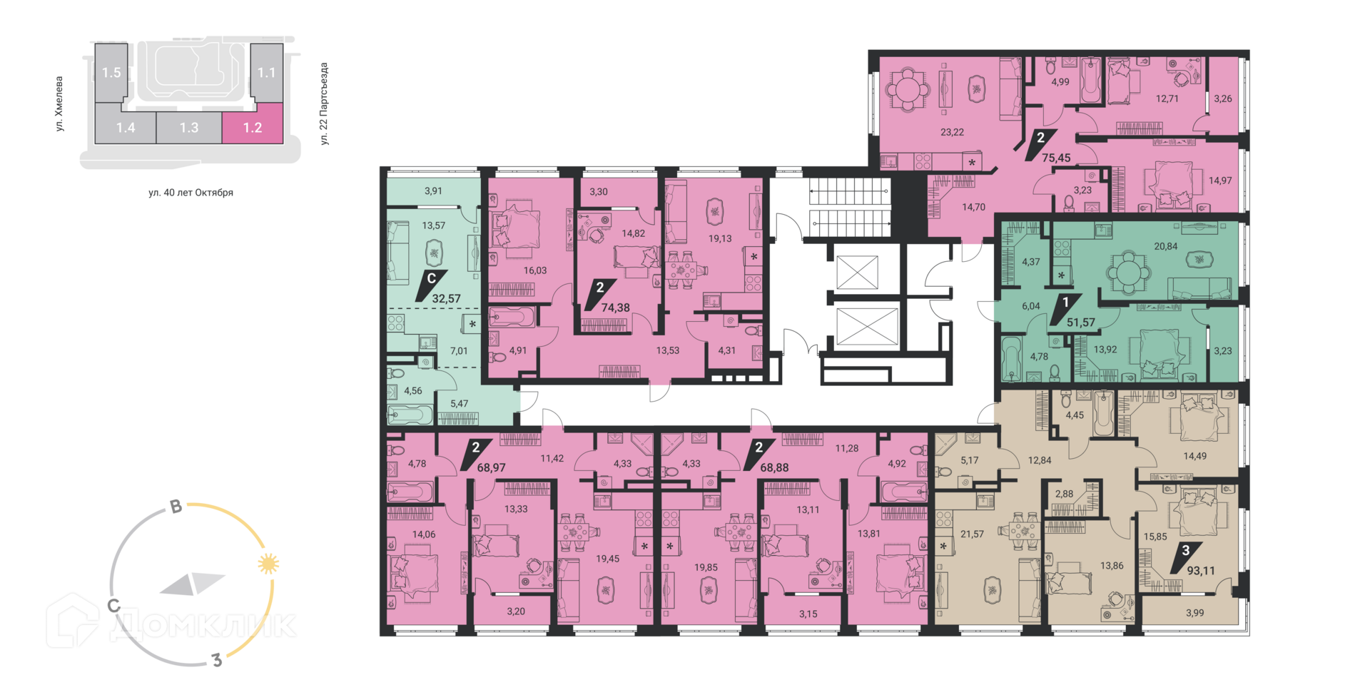 Площади квартир