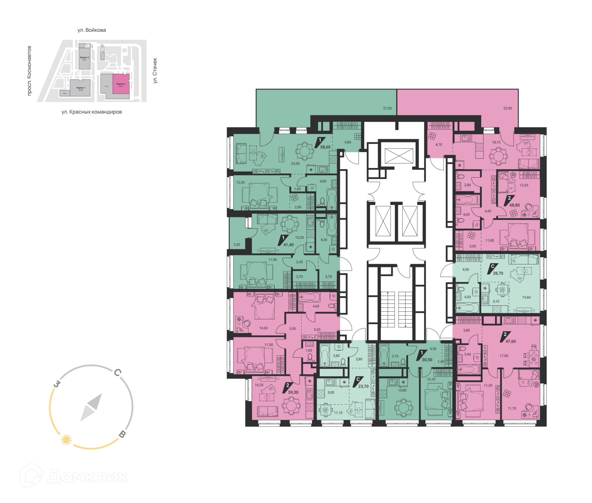 Площади квартир