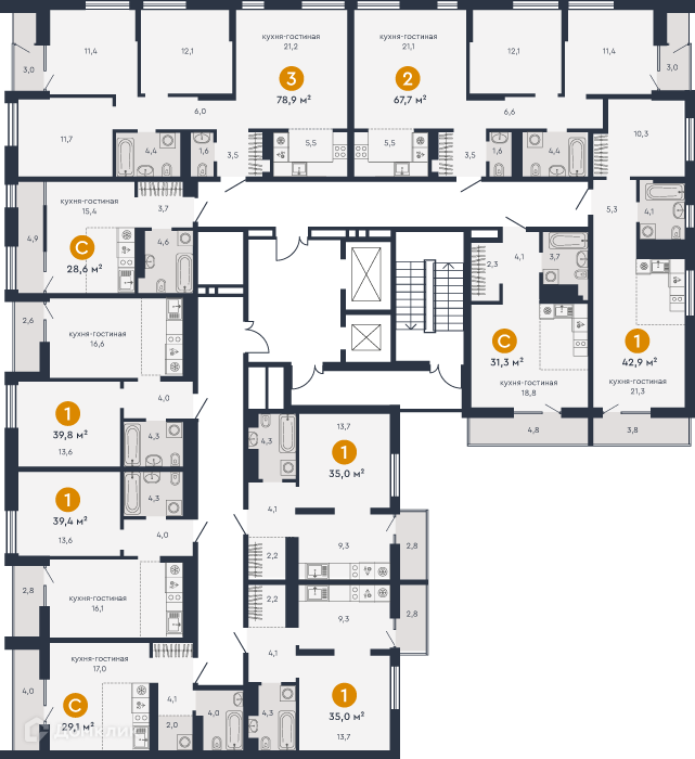 Площади квартир