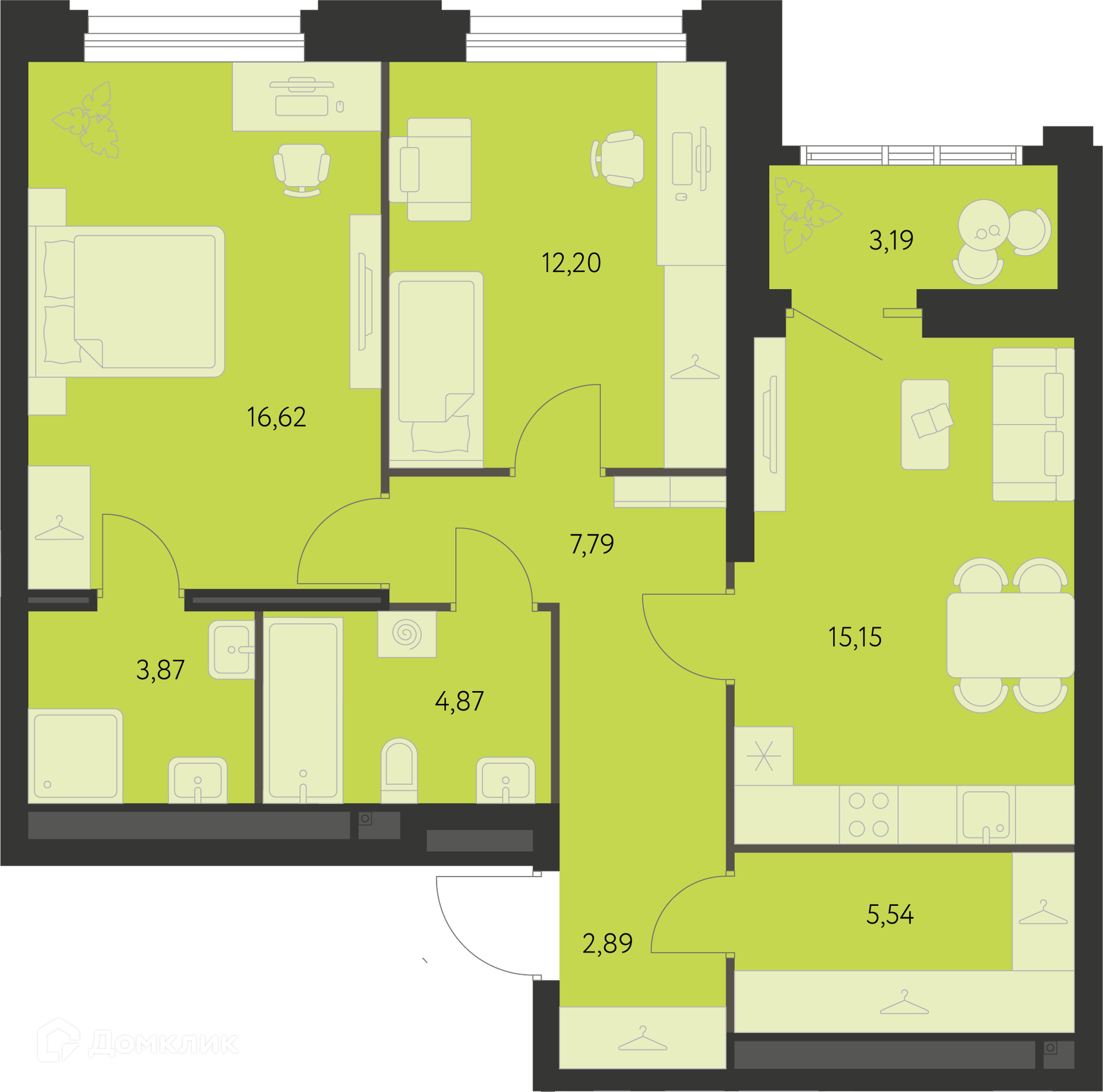 Площади квартир