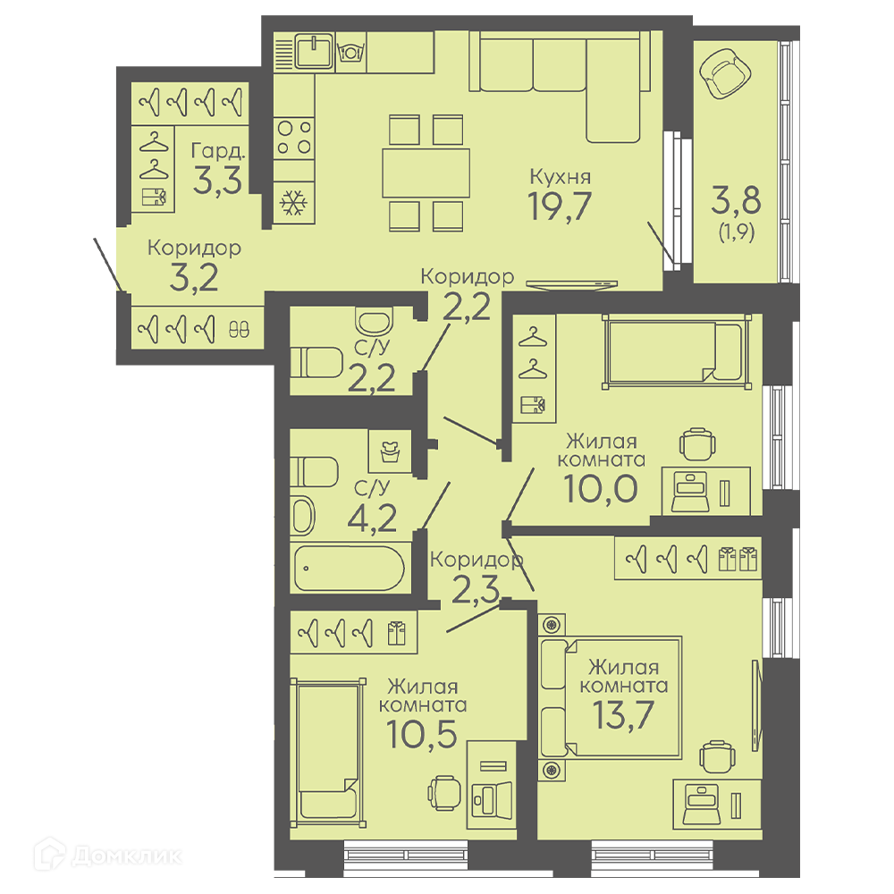 Площади квартир