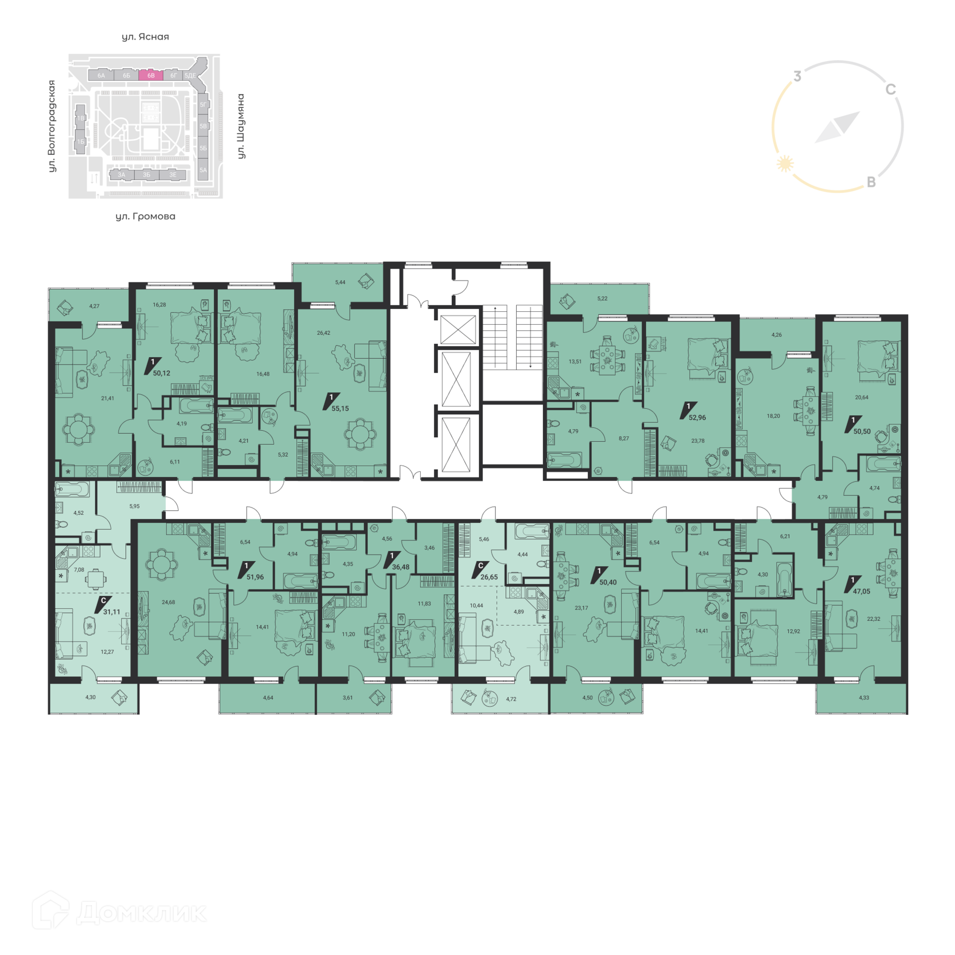 Площади квартир