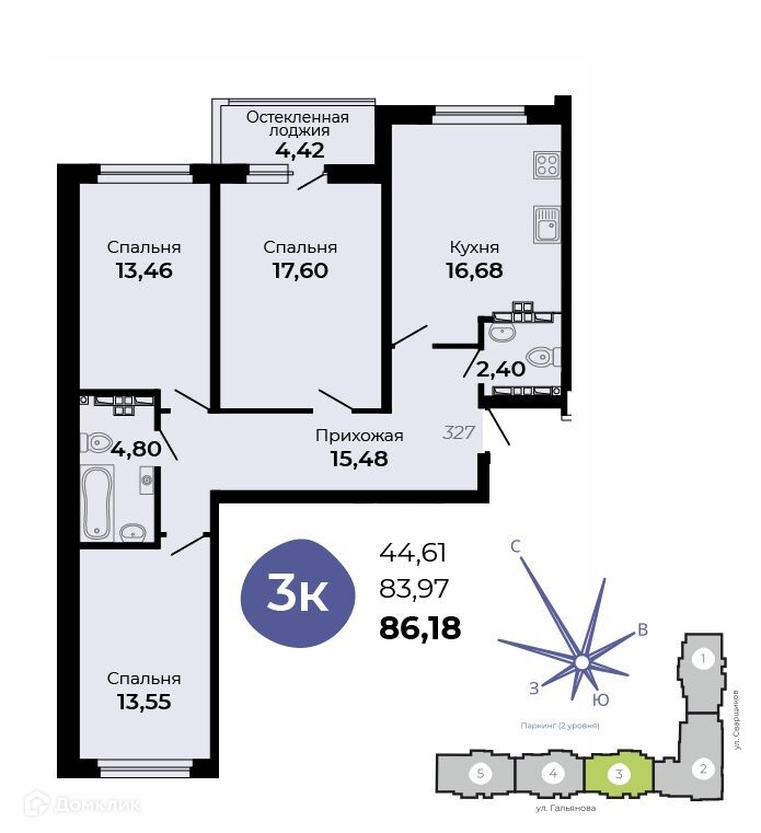 ЖК Есенин. 1 этап строительства (1-5 подъезды, паркинг) Кирпичные стены, железобетонный каркас! Доступный комфорт! Архитектурная концепция —удобная и продуманная жизнь! Улучшенные планировки, большой просторный двухуровневый паркинг, кладовые! Сдержанные тона фасадов и единый стиль комплекса задают атмосферу комфорта и спокойствия. Сам дом будет 13-15-16 этажным Г-образной формы с семью секциями. Большой центральный вход с отдельным лифтом на 3 остановки! Просторные колясочные по 30 м2 в каждой секции! и велосипеды в них тоже можно хранить. Закрытый двор, видеонаблюдение! В доме есть подземный паркинг на 211 мест и 69 кладовых. Здесь точно тепло и безопасно! Современный подземно-наземный паркинг с остановкой лифтов на каждом уровне. Все квартиры сдаются с отделкой под чистовую, но за дополнительную плату возможно выполнение чистовой отделки — поклейка обоев, укладка полов, установка сантехники и межкомнатных дверей.