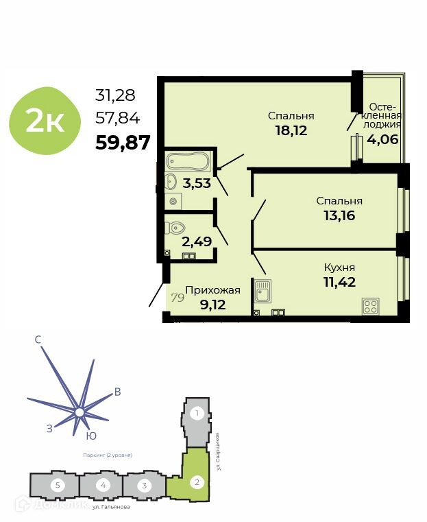 Планировка 2 комн. в ЖК Есенин
