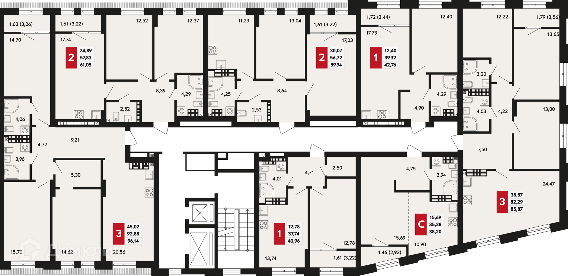 Площади квартир