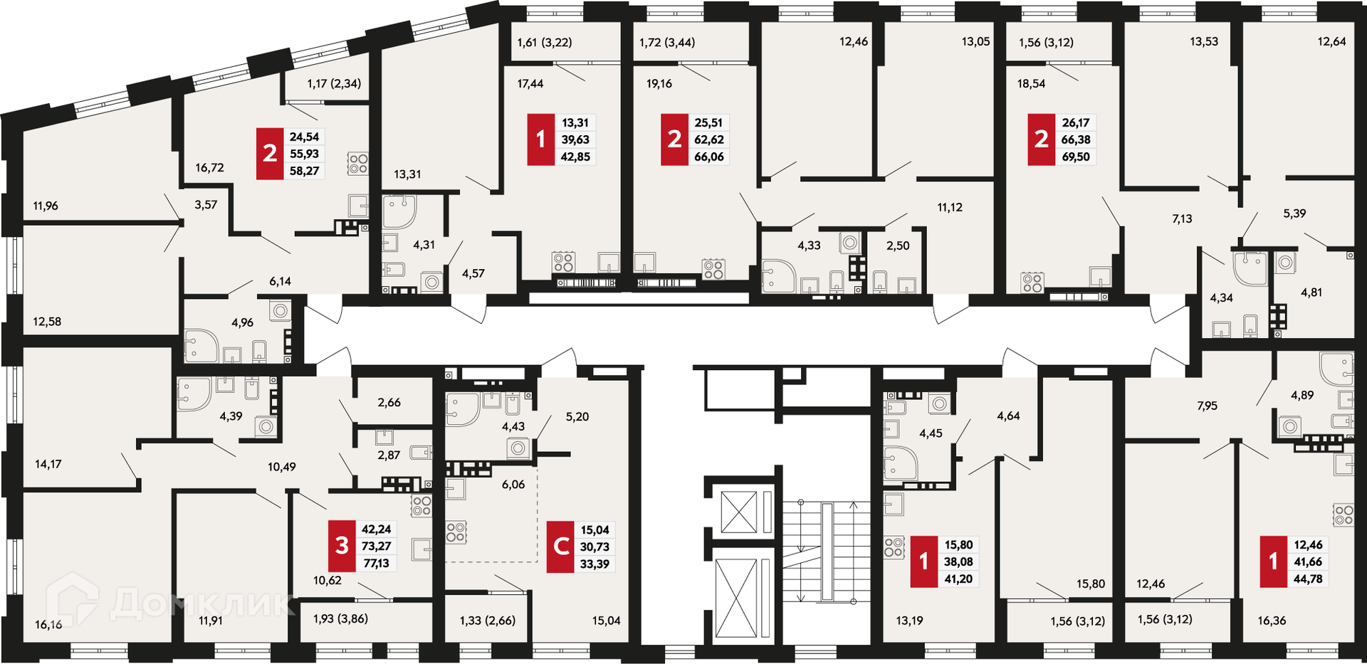 - Общая площадь: 41.2 м²