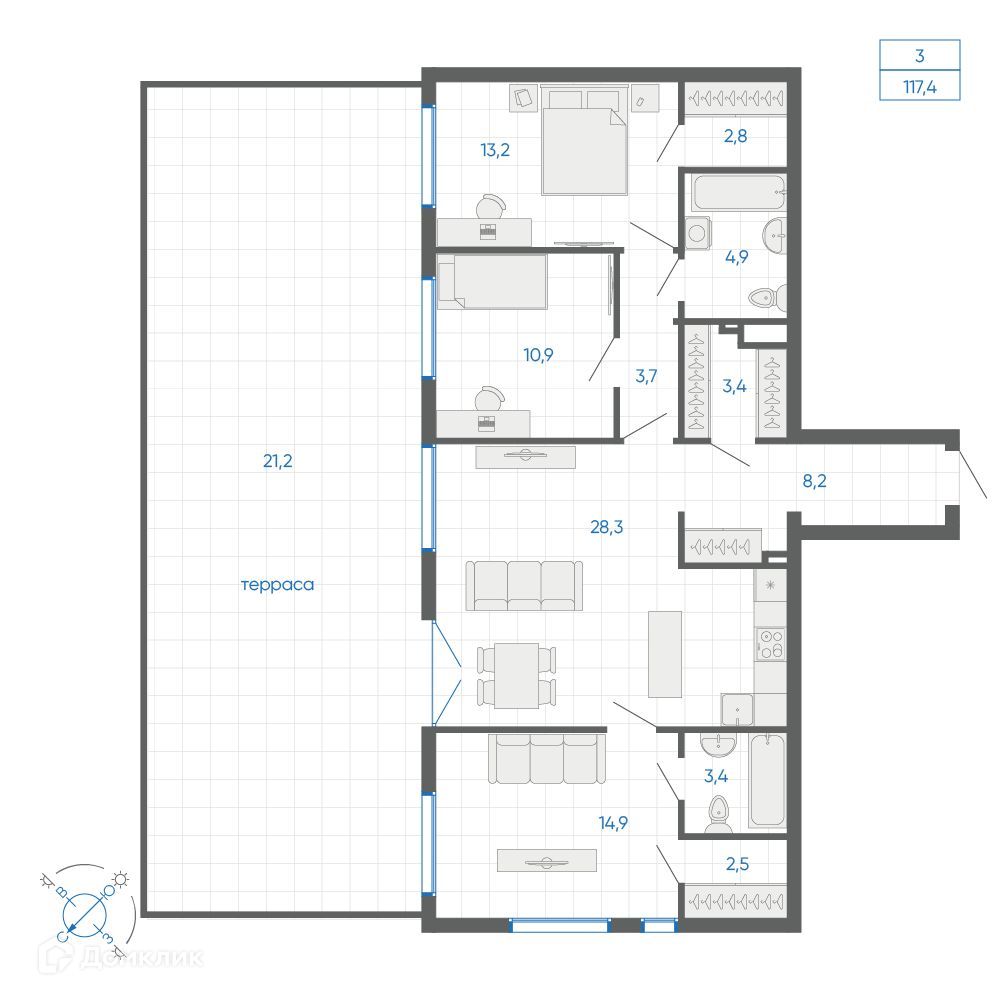 Площади квартир
