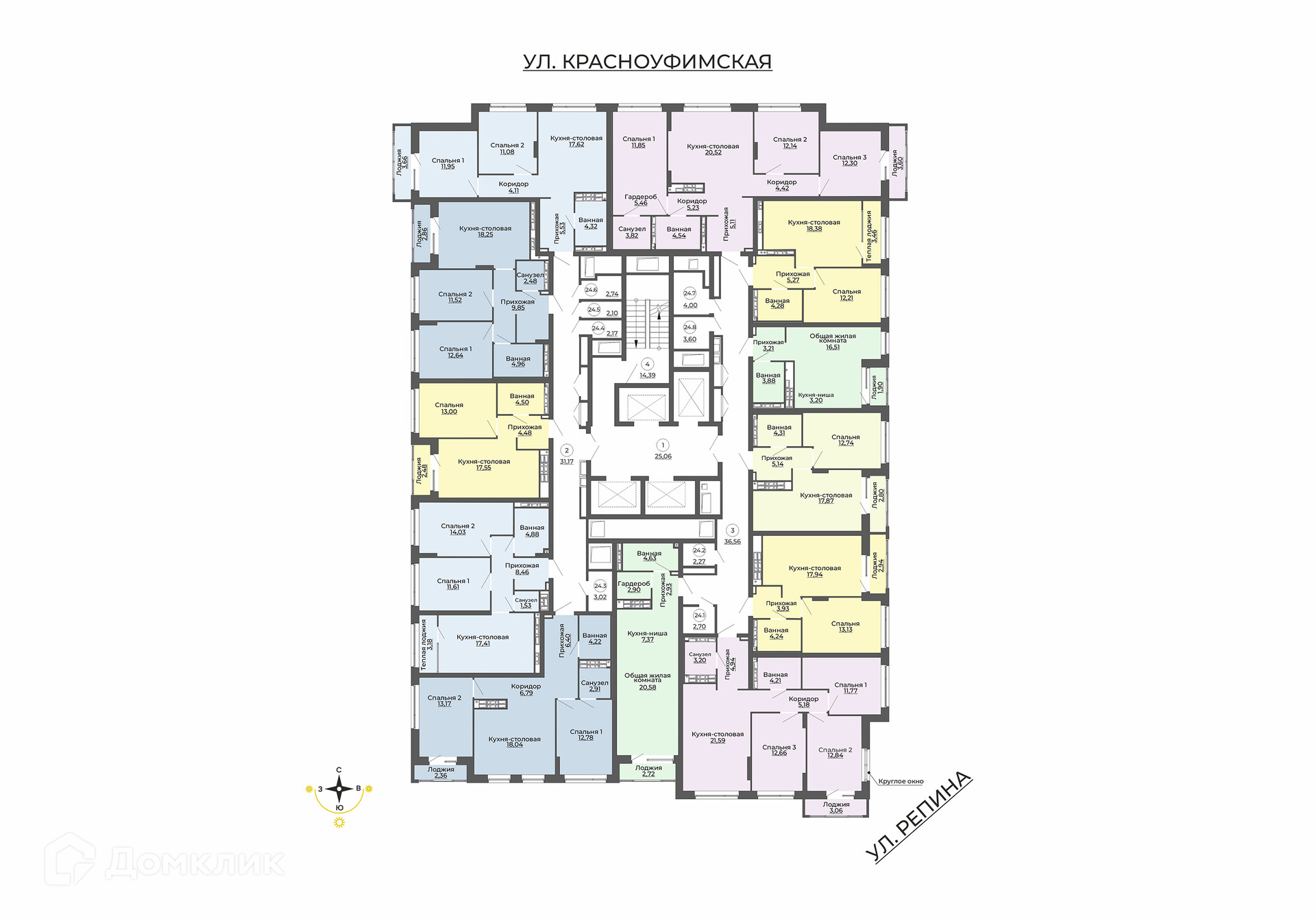 Цена указана с учетом скидки 3% при полной единовременной оплате. Не действует при оплате в рассрочку. Дом №3 Ввод в эксплуатацию – первая половина 2026 г. (возможен досрочный ввод). Класс дома: комфорт. Отделка: чистовая (под ключ). Архитектурное решение: строгий фасад дома выполнен в глубоком синем цвете и дополнен выразительным элементом, напоминающим огромную линзу. Объем здания также формируют навесные балконы. В квартирах с такими балконами предусмотрены еще и теплые лоджии. Вид из окон: на городскую застройку, двор, школу и детский сад. ЖК Repin Towers – три башни разной этажности объединённые общим двором. Комплекс расположен на пересечение улиц Репина – Заводская. На территории запроектирован детский сад, до школы около 100 метров, пересекать проезжую часть не придется. В шаговой доступности находятся: школы (№ 41, 57, 168, 121, Гимназия 202 "Менталитет") детские сады (№7, 67, 348, 510) остановки общественного транспорта (ул. Репина, Начдива Васильева, Металлургов) торговые центры (Мега, Радуга-парк) парк отдыха Радуга набережная Верх-Исетского пруда с яхт-клубом "Коматек" Современная архитектура. Минимализм и круглые окна — особенность, выделяющая дом среди окружающей застройки. Двор без машин. Игровые площадки для детей разных возрастов, места отдыха и занятий спортом для взрослых не соседствуют с парковкой. Релакс-зона. Шезлонги и зонтики, поворотные кресла и паровой камин для спокойного отдыха. Парк во дворе. Многоуровневое озеленение и система туманообразования. 3 уровня безопасности. Контроль доступа по карте жителя, эффективная система видеонаблюдения, консьерж-сервис. Дизайнерские холлы. Парадный холл с остеклением в пол, гостевым санузлом и зонами ожидания. Технический холл. Для разгрузки строительных материалов, мебели и крупногабаритных вещей предусмотрен отдельный технический холл. В нем расположен грузовой лифт и санузел для мытья лап животным, а также колес велосипедов и колясок. Сервисная компания от застройщика. Обслуживанием дома будет заниматься профессиональная команда. Строительные и технические преимущества. Индивидуальный тепловой пункт: снижает затраты на отопление. Система очистки улучшит качество воды в доме. Пятикамерные окна задержат шумы и холод. Клапан вентиляции позволит проветрить комнату, не устраивая сквозняк. Горизонтальная разводка отопления: трубы спрятаны в полу. Счетчики с телеметрией. Отдельный счетчик на отопление у каждой квартиры. Отведение конденсата для кондиционеров. Высокий уровень шумоизоляции у стены квартир. Бесшумные, скоростные лифты. Реализация строящегося объекта осуществляется от застройщика по договору участия в долевом строительстве в соответствии с ФЗ-214 «Об участии в долевом строительстве», застройщик ООО «Специализированный Застройщик Репина». Варианты оплаты: ипотека, индивидуальные условия рассрочки, trade in, материнский и жилищные сертификаты, подробности в отделе продаж.