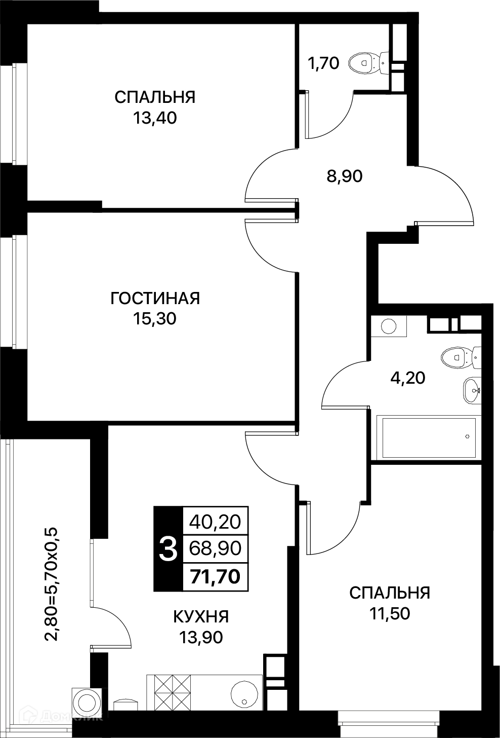 Площади квартир