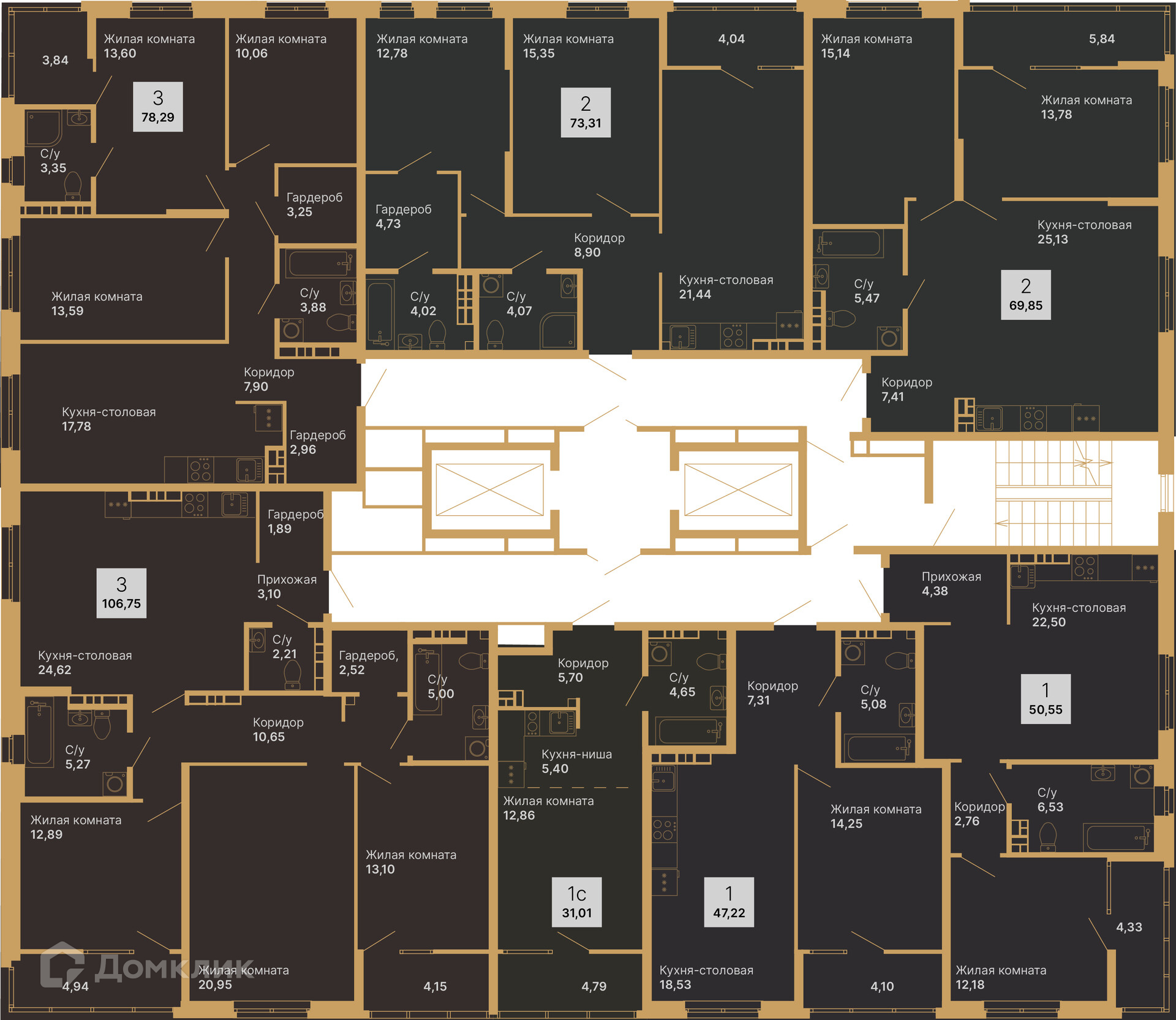 Площади квартир