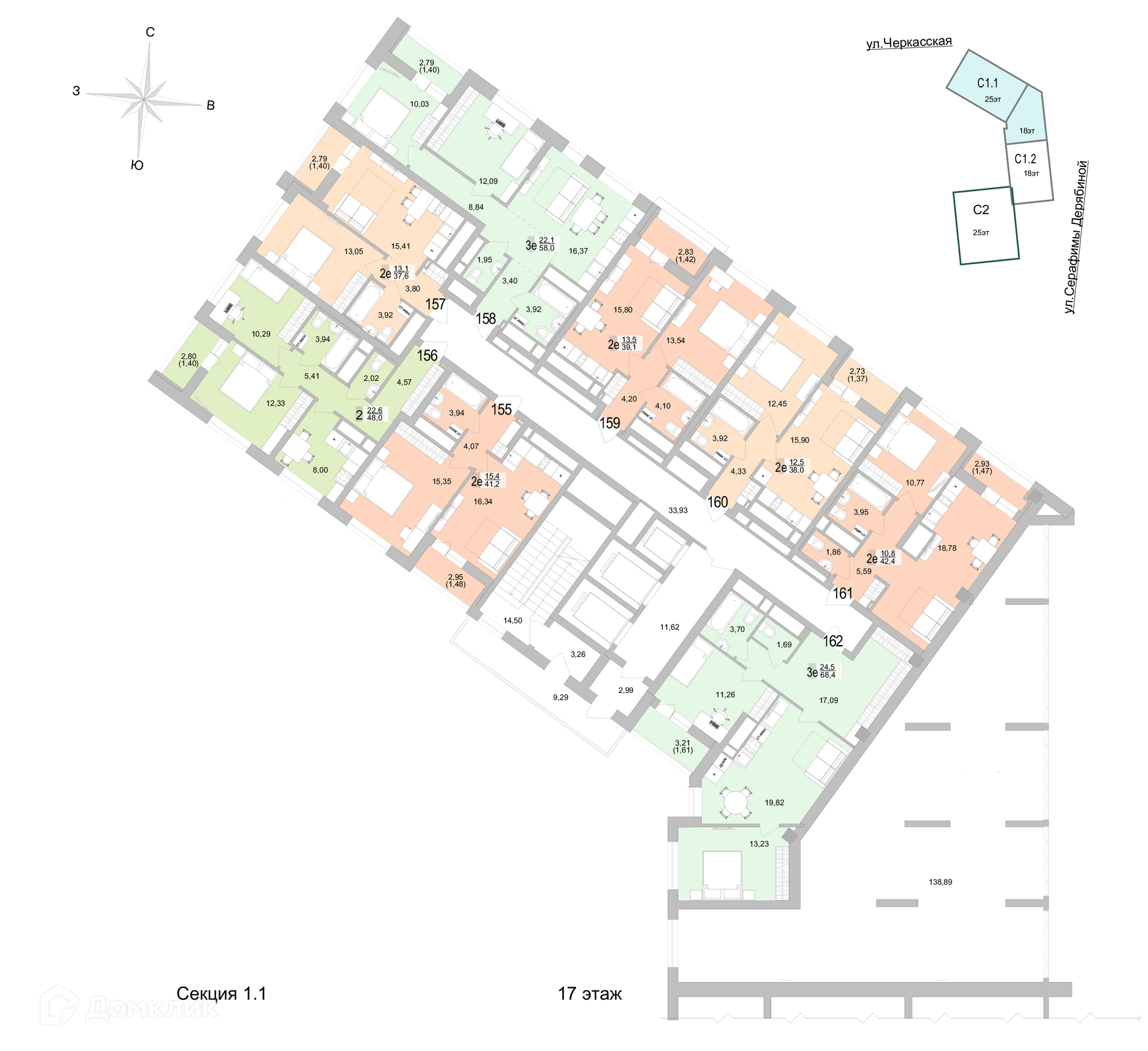 Площади квартир