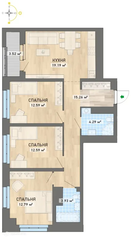 3 комн. квартира в Екатеринбурге в ипотеку от 103 694 руб/месяц