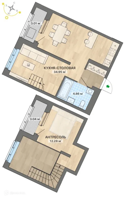 34.95 м²