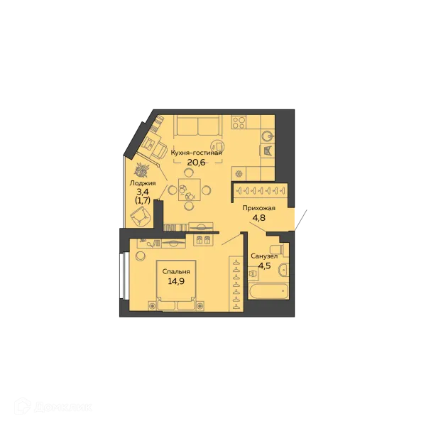 1 комн. квартира в Екатеринбурге в ипотеку от 68 697 руб/месяц