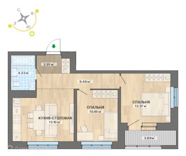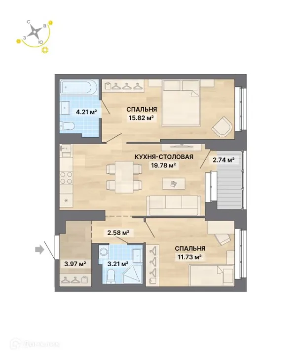 2 комн. квартира в Екатеринбурге в ипотеку от 66 249 руб/месяц