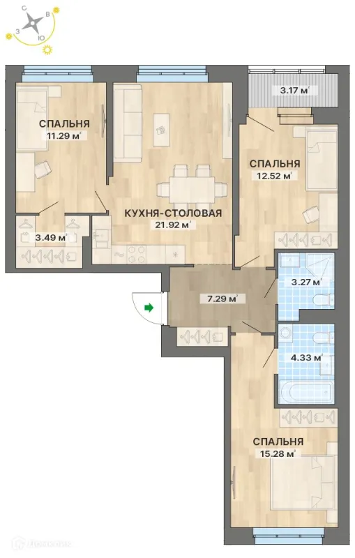 3 комн. квартира в Екатеринбурге в ипотеку от 91 452 руб/месяц