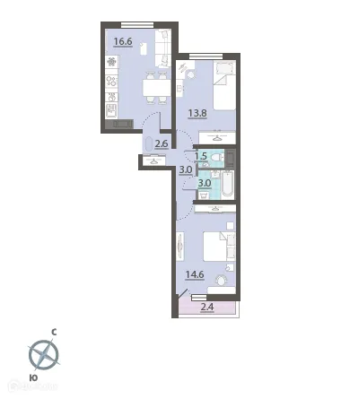 2 комн. квартира в Екатеринбурге в ипотеку от 56 957 руб/месяц