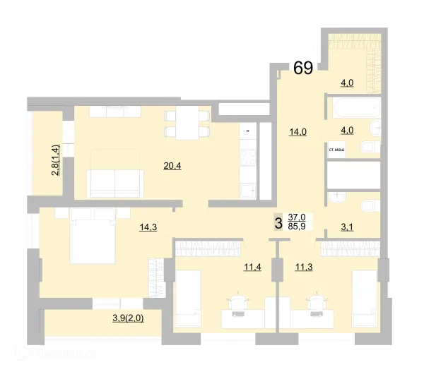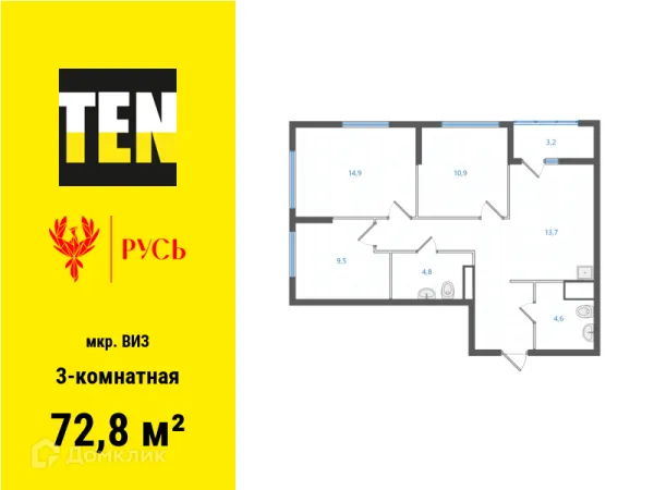 3 комн. квартира в Екатеринбурге в ипотеку от 68 951 руб/месяц