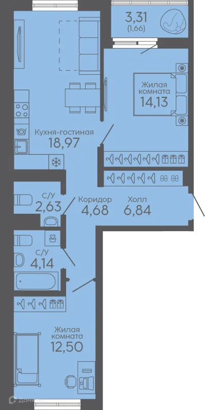 2 комн. квартира в Екатеринбурге в ипотеку от 126 737 руб/месяц