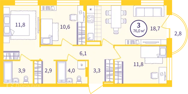 3 комн. квартира в Екатеринбурге в ипотеку от 86 099 руб/месяц