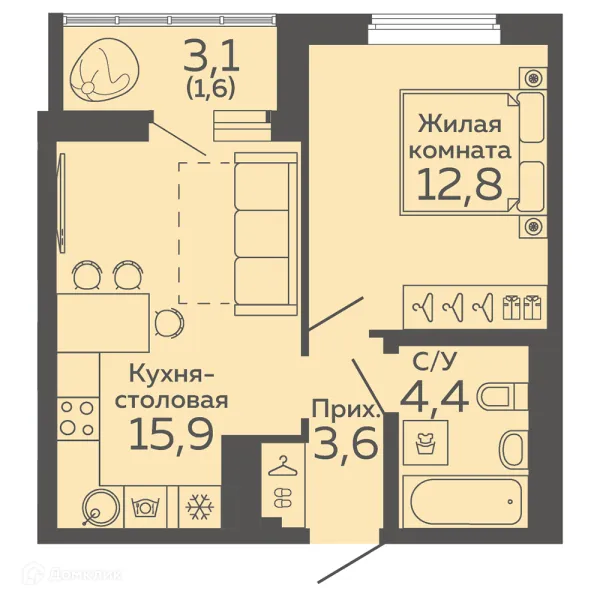 1 комн. квартира в Екатеринбурге в ипотеку от 37 141 руб/месяц
