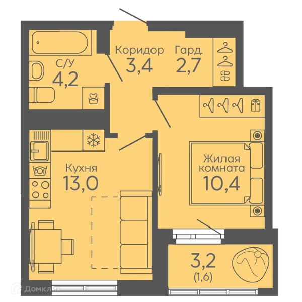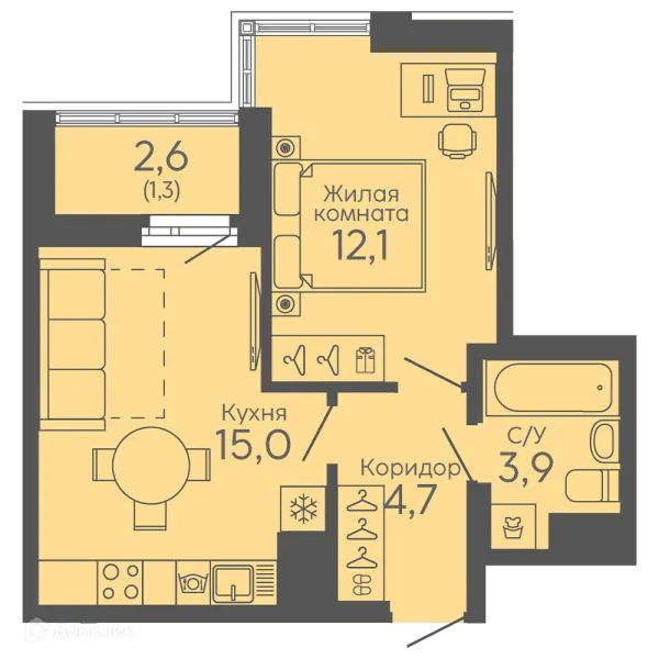 1 комн. квартира в Екатеринбурге в ипотеку от 34 413 руб/месяц
