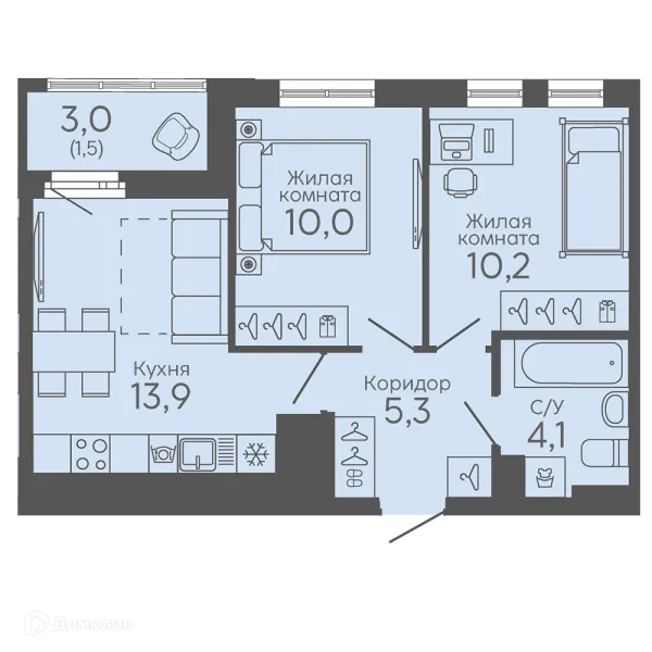 2 комн. квартира в Екатеринбурге в ипотеку от 56 868 руб/месяц