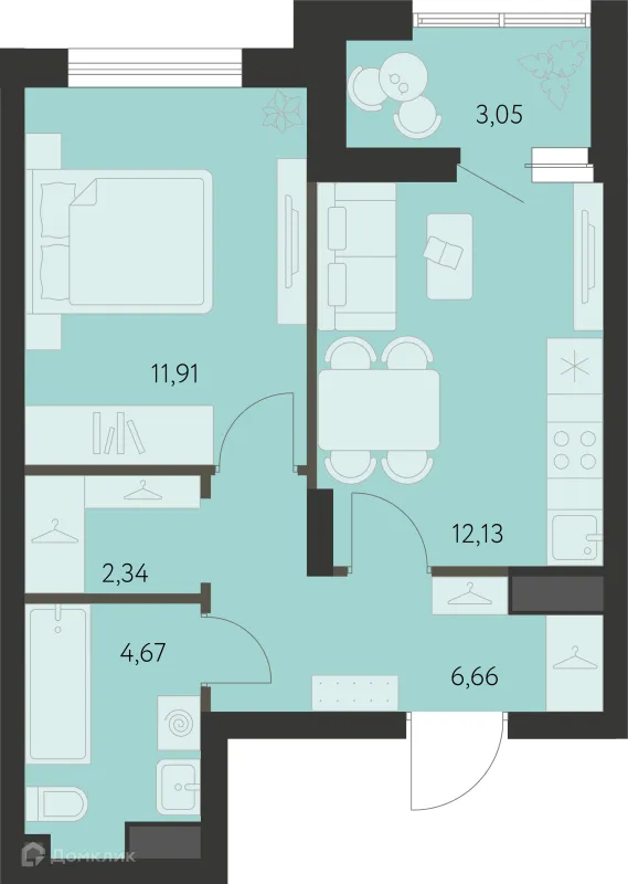 1 комн. квартира в Екатеринбурге в ипотеку от 46 784 руб/месяц