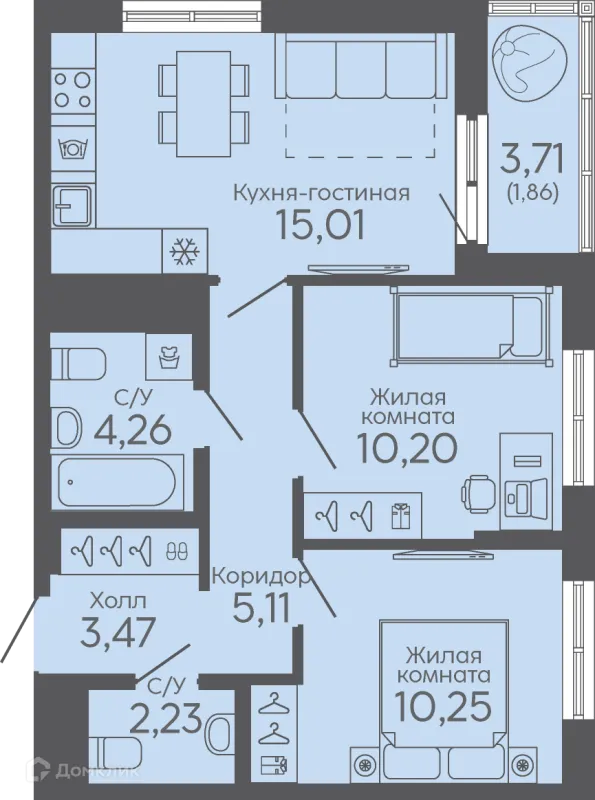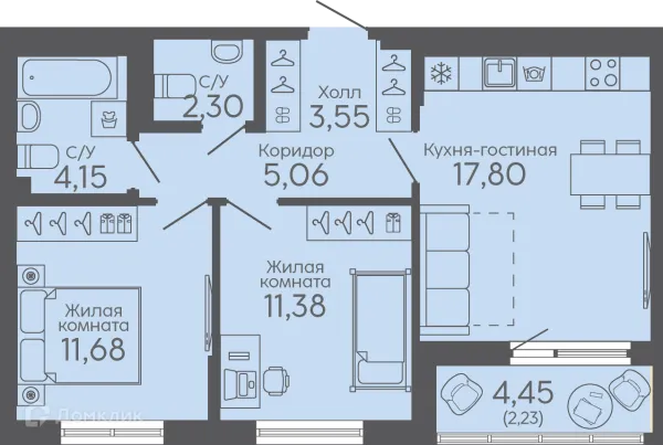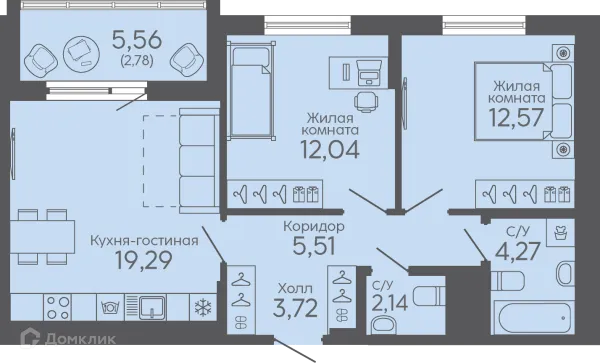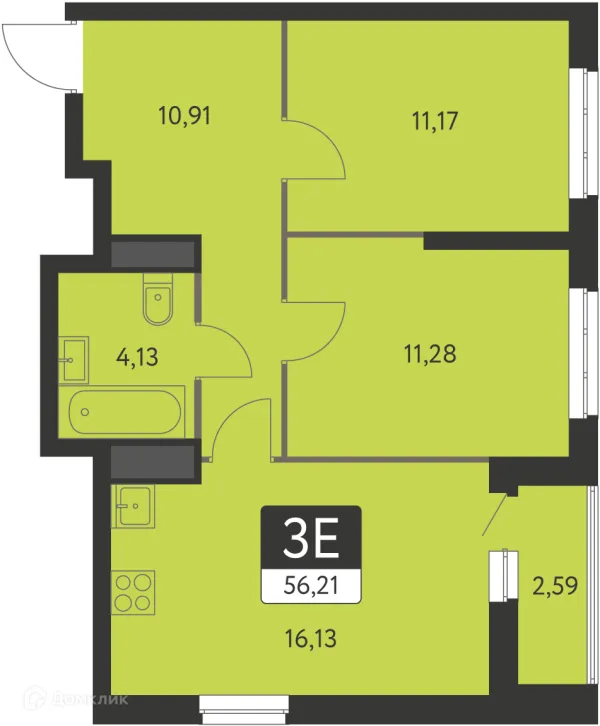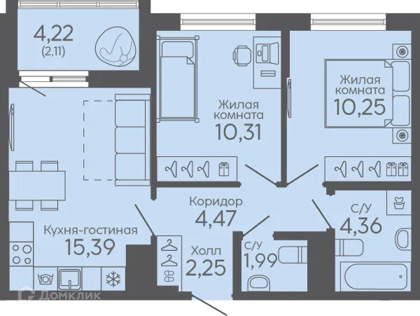 2 комн. квартира в Екатеринбурге в ипотеку от 57 518 руб/месяц