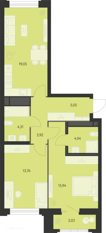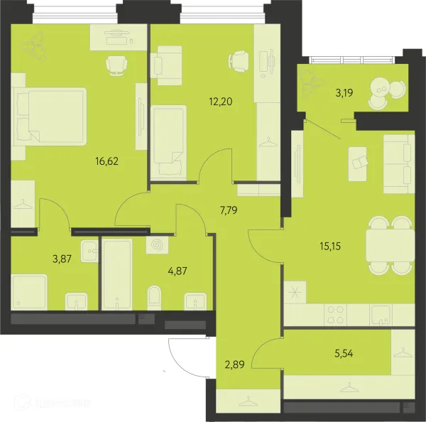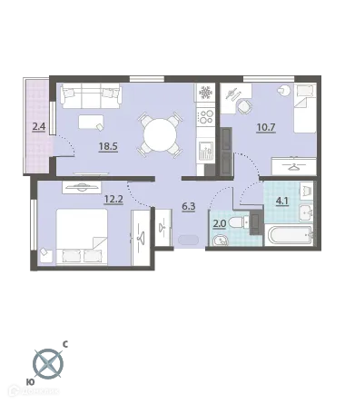2 комн. квартира в Екатеринбурге в ипотеку от 56 477 руб/месяц