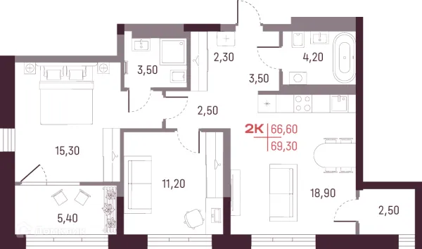 2 комн. квартира в Екатеринбурге в ипотеку от 69 669 руб/месяц