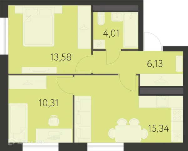 2 комн. квартира в Екатеринбурге в ипотеку от 55 210 руб/месяц