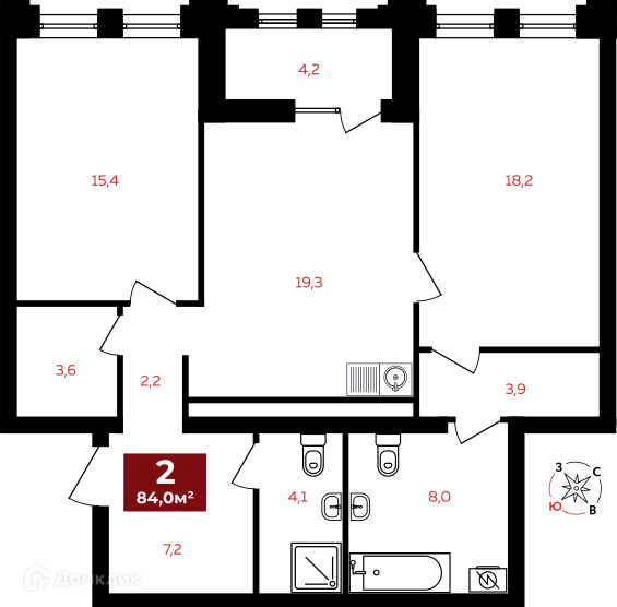 2 комн. квартира в Екатеринбурге в ипотеку от 73 768 руб/месяц