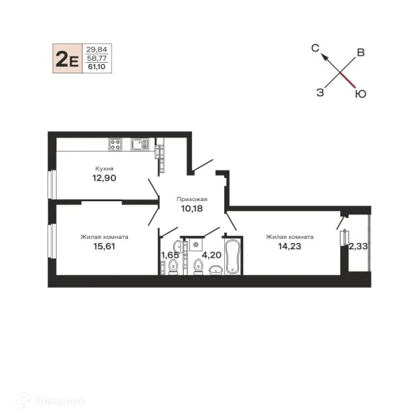 2 комн. квартира в Екатеринбурге в ипотеку от 77 158 руб/месяц