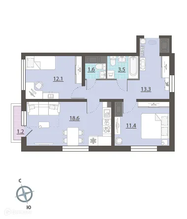 2 комн. квартира в Екатеринбурге в ипотеку от 65 926 руб/месяц