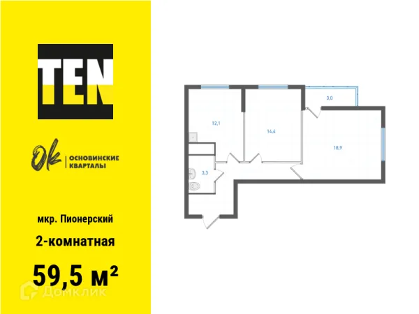 2 комн. квартира в Екатеринбурге в ипотеку от 75 534 руб/месяц