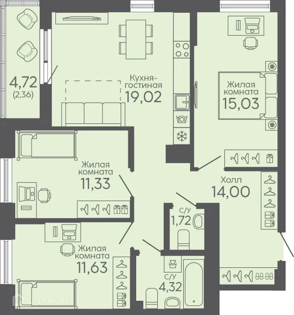 3 комн. квартира в Екатеринбурге в ипотеку от 92 172 руб/месяц