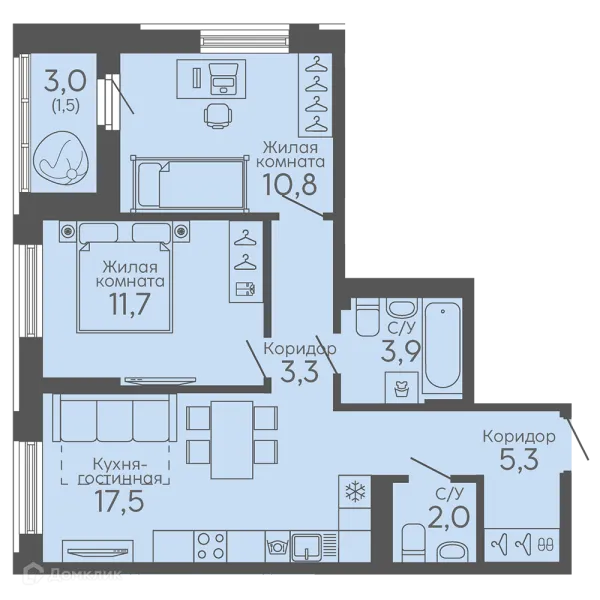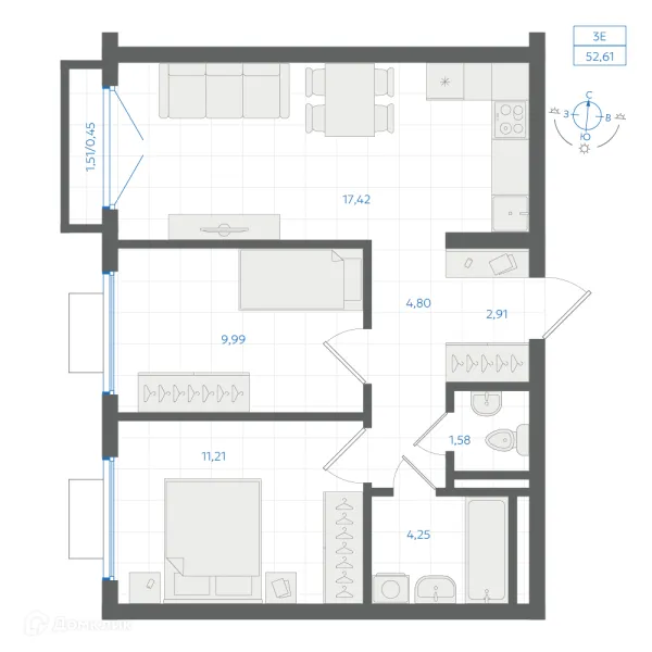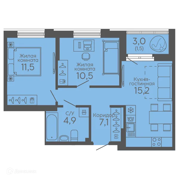 2 комн. квартира в Екатеринбурге в ипотеку от 43 206 руб/месяц