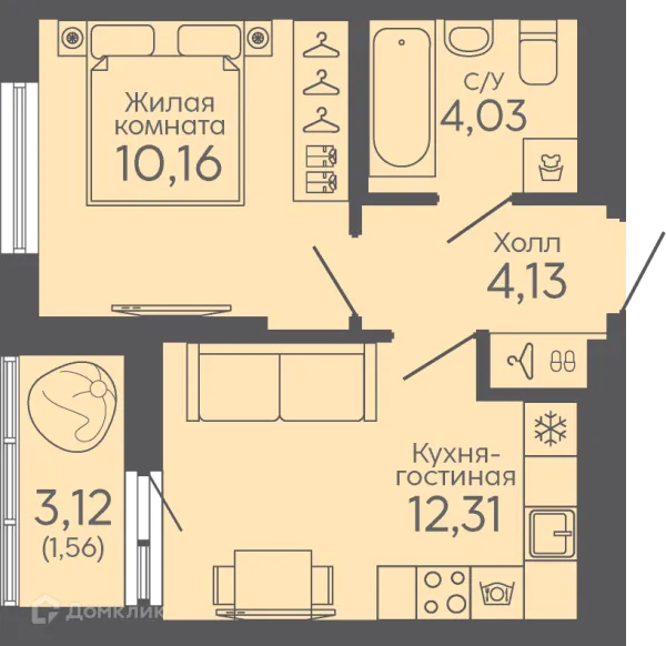 1 комн. квартира в Екатеринбурге в ипотеку от 34 428 руб/месяц