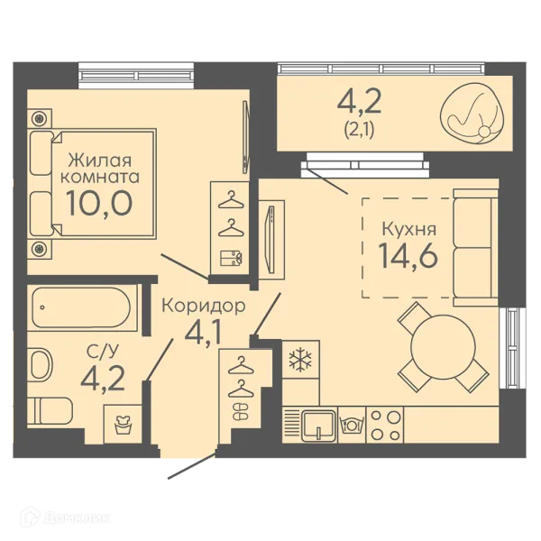1 комн. квартира в Екатеринбурге в ипотеку от 42 442 руб/месяц