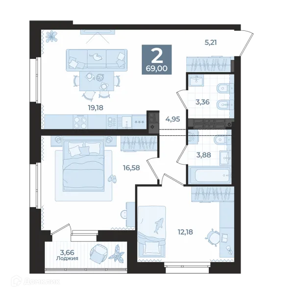 2 комн. квартира в Екатеринбурге в ипотеку от 66 298 руб/месяц