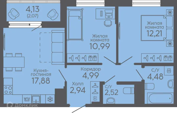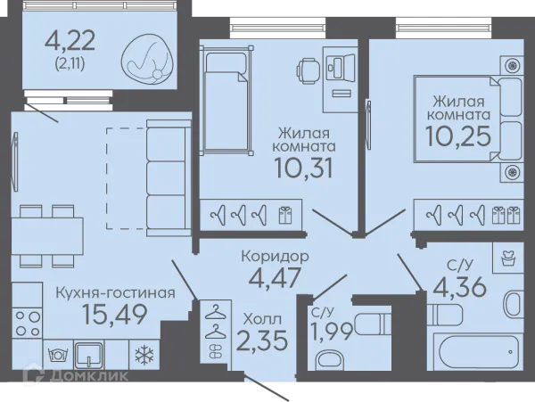 2 комн. квартира в Екатеринбурге в ипотеку от 65 539 руб/месяц