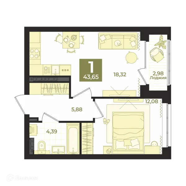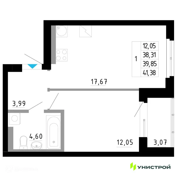 1 комн. квартира в Екатеринбурге в ипотеку от 55 303 руб/месяц