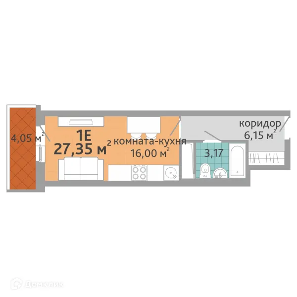 1 комн. квартира в Екатеринбурге в ипотеку от 27 471 руб/месяц