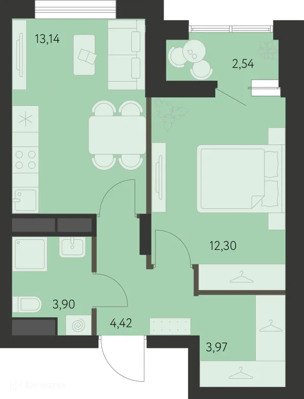1 комн. квартира в Екатеринбурге в ипотеку от 42 514 руб/месяц