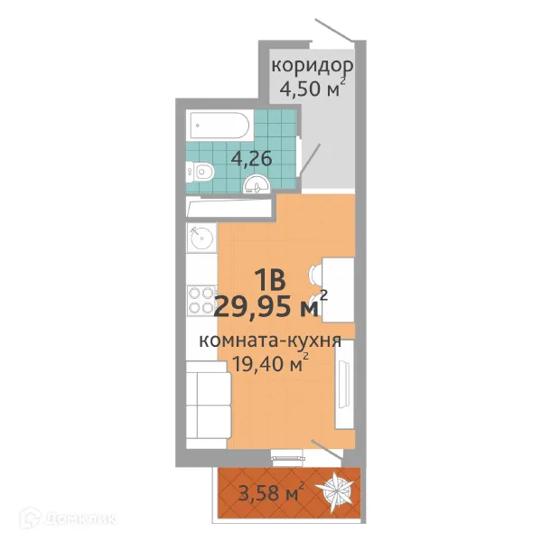 1 комн. квартира в Екатеринбурге в ипотеку от 50 405 руб/месяц
