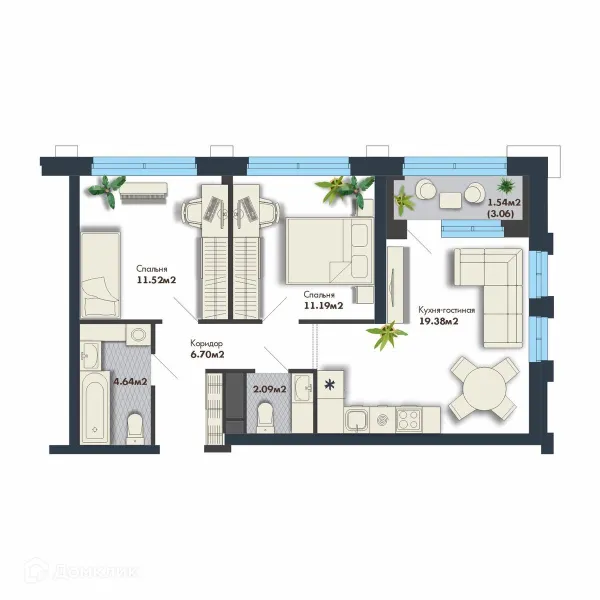 2 комн. квартира в Екатеринбурге в ипотеку от 104 712 руб/месяц