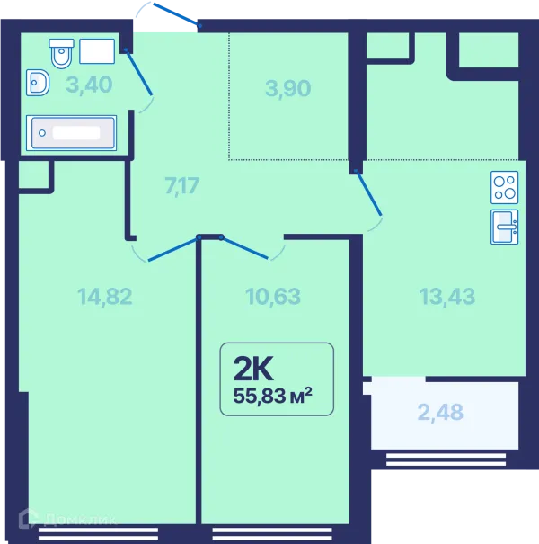 2 комн. квартира в Екатеринбурге в ипотеку от 52 670 руб/месяц